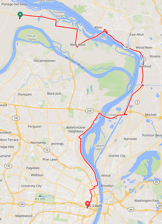 On the left, get onto the St. Louis Riverfront Trail, heading